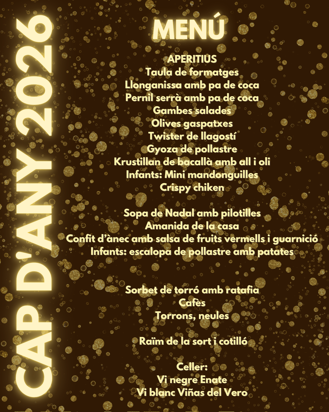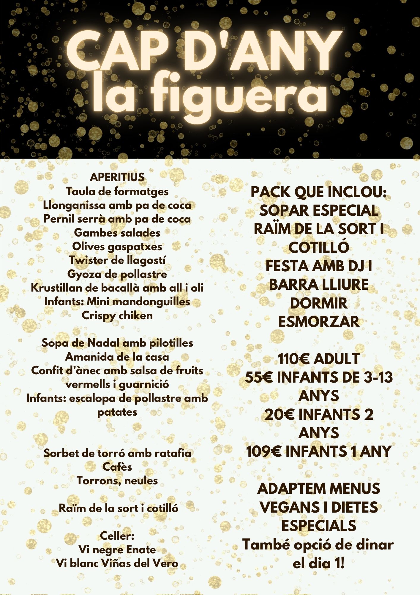 Sopar de gala, festa amb DJ, barra lliure, dormir i esmorzar. 110€ adult i 55€ infants de 3-12 anys, 17€ infants de 2 anys i 10€ infants 1 any