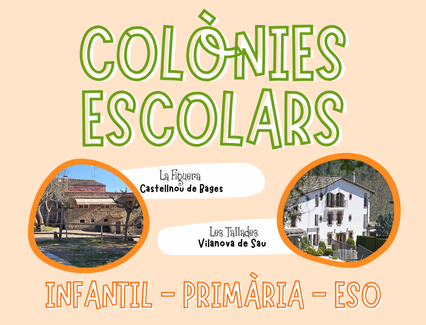 Oferim colònies escolars per a escoles a les nostres cases de colònies Les Tallades (Osona) i La Figuera (Castellnou de Bages).