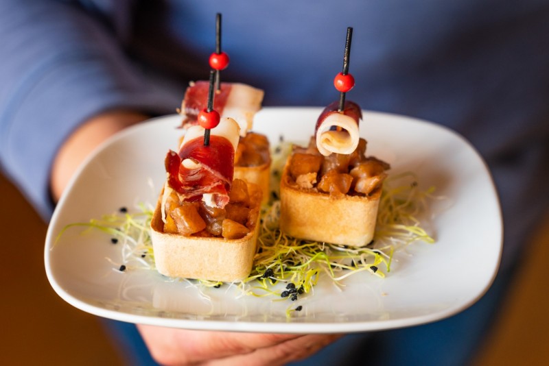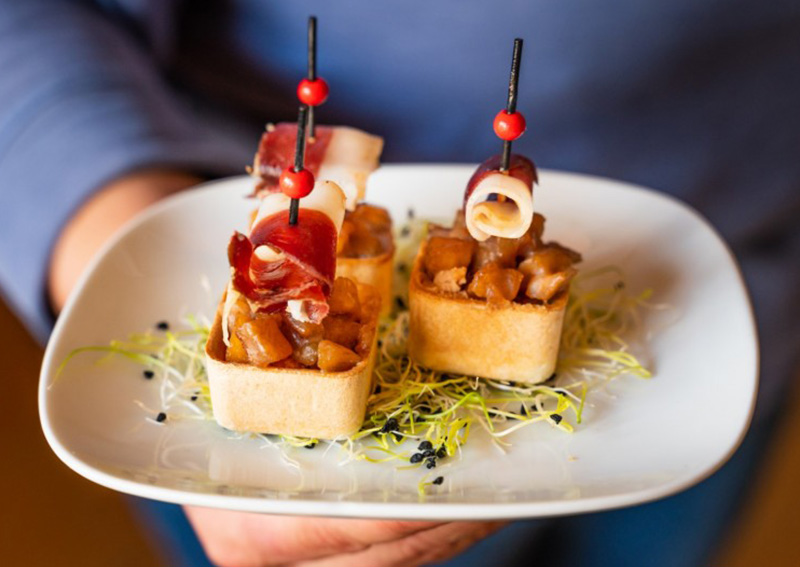 Os ofrecemos una variedad de propuestas, de cocina propia, con sus aperitivos, platos principales, postre y bodega. También ofredemos menús para personas celíacas, veganas y vegetarianas.